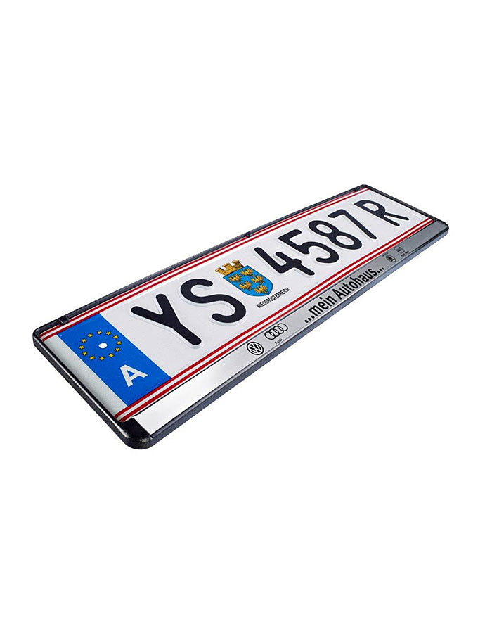 Kennzeichenhalter Österreich - silber - Mit Mehrfarbiger Digitaldruck 4C- Ab 2 Stück