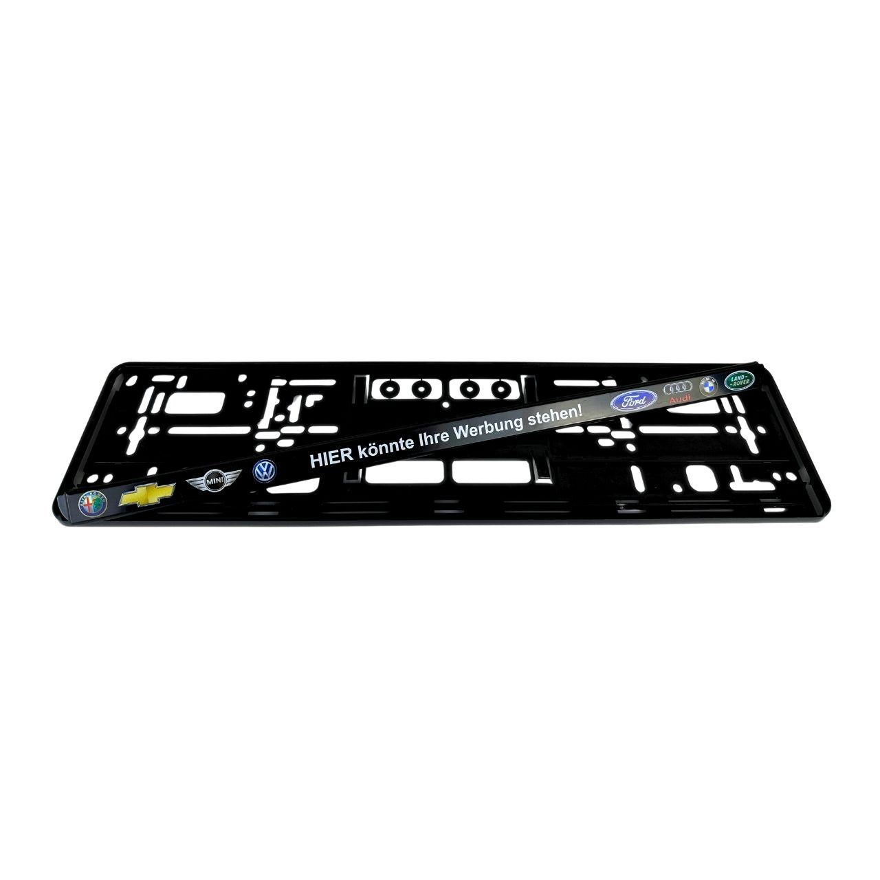 Sie möchten Kennzeichenhalter bedrucken lassen? Eine Werbebotschaft, Ihre Kontaktdaten oder sonstige Aufdrucke sollen auf den Nummernschildhaltern unaufdringlich auf Ihre Firma aufmerksam machen? Eine clevere Idee, denn die Werbefläche von 503 x 18 mm lädt geradezu dazu ein, seine Werbung gekonnt in Szene zu setzen. Und das Ganze unkompliziert, schnell und kostengünstig mit kennzeichenhalter4you.de.
