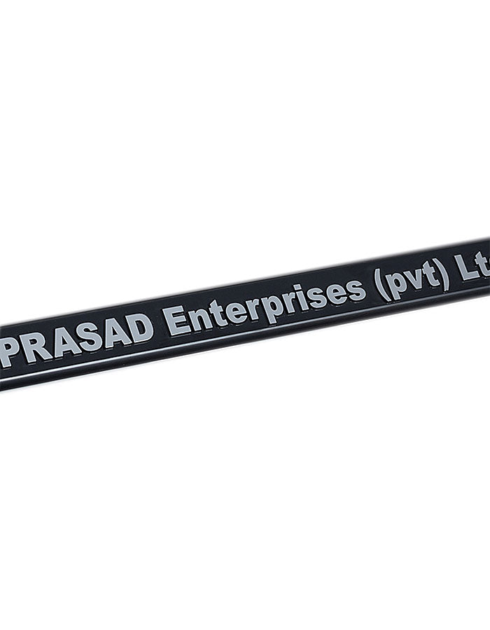 Die erhabene Schrift bildet einen eleganten Kontrast zur schwarzen Rahmenfarbe. Der plastische Auftritt wirkt edel und bleibt auch bei starker Beanspruchung gut erkennbar.